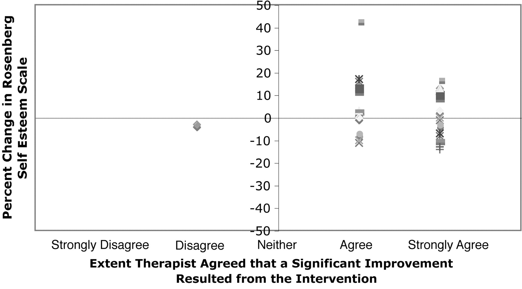 FIGURE 4 Therapists' perception of their treatment's effectiveness with self-esteem.
