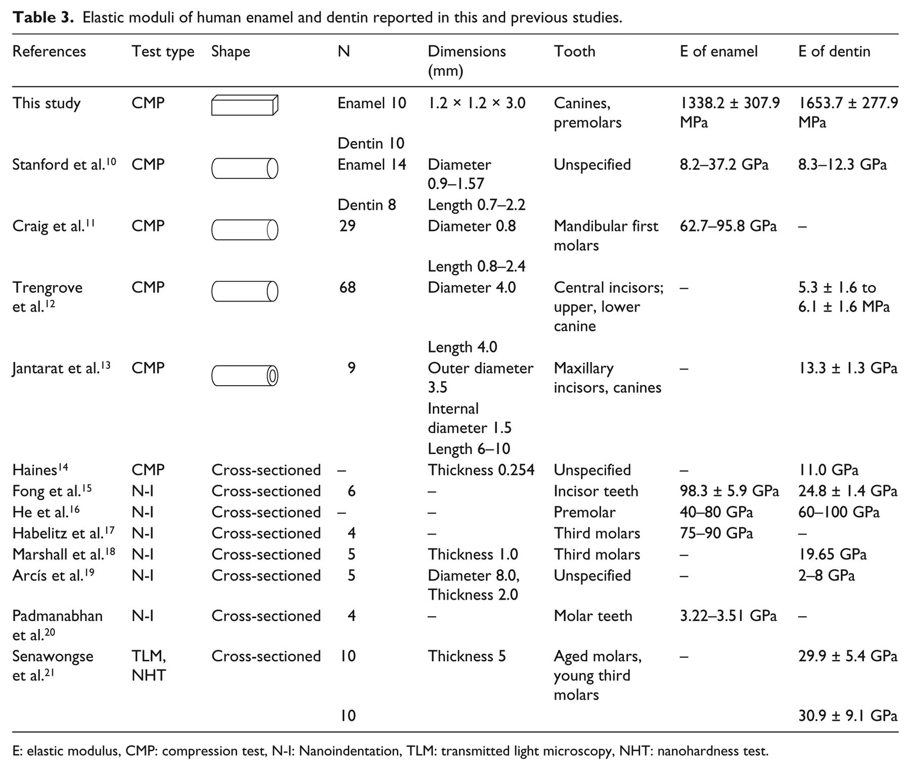 Comparison of mechanical property and role between enamel and dentin in the human teeth
