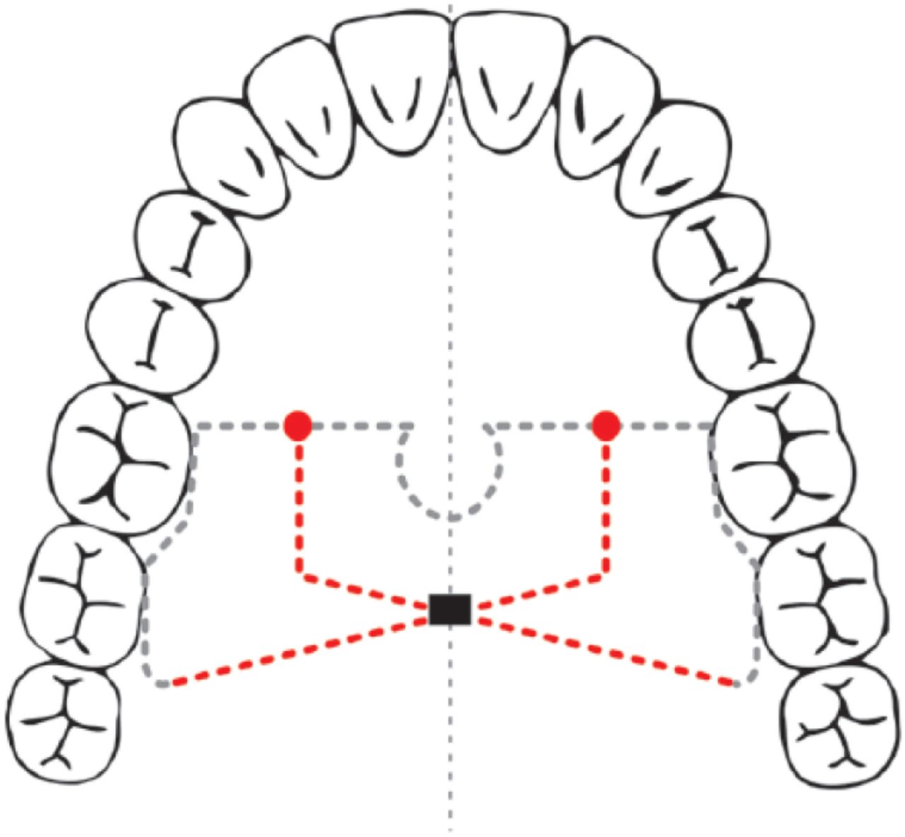 Tip-back moment created by tongue function on tongue trapping area regarding center of resistance of the appliance.