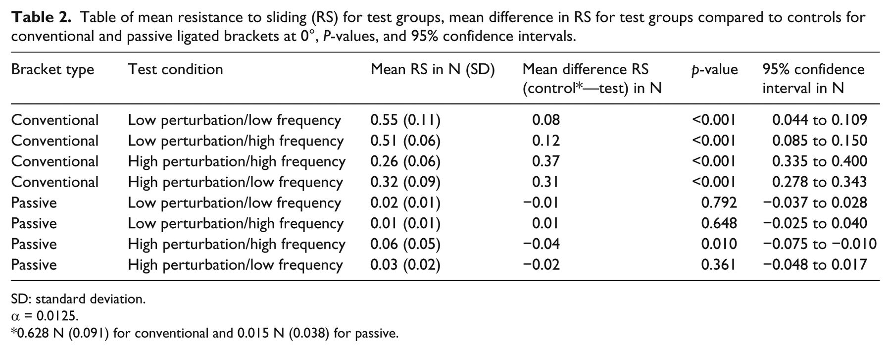 The effect of perturbations on resistance to sliding in second-order moments comparing two different bracket types
