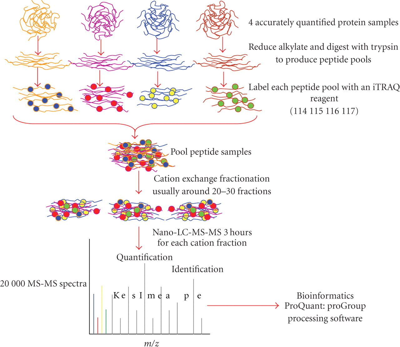 iTRAQ work flow. Adapted from Bill Simon and Toni Slabas, Proteomics Facility, School of Biological and Biomedical Sciences, University of Durham, UK.