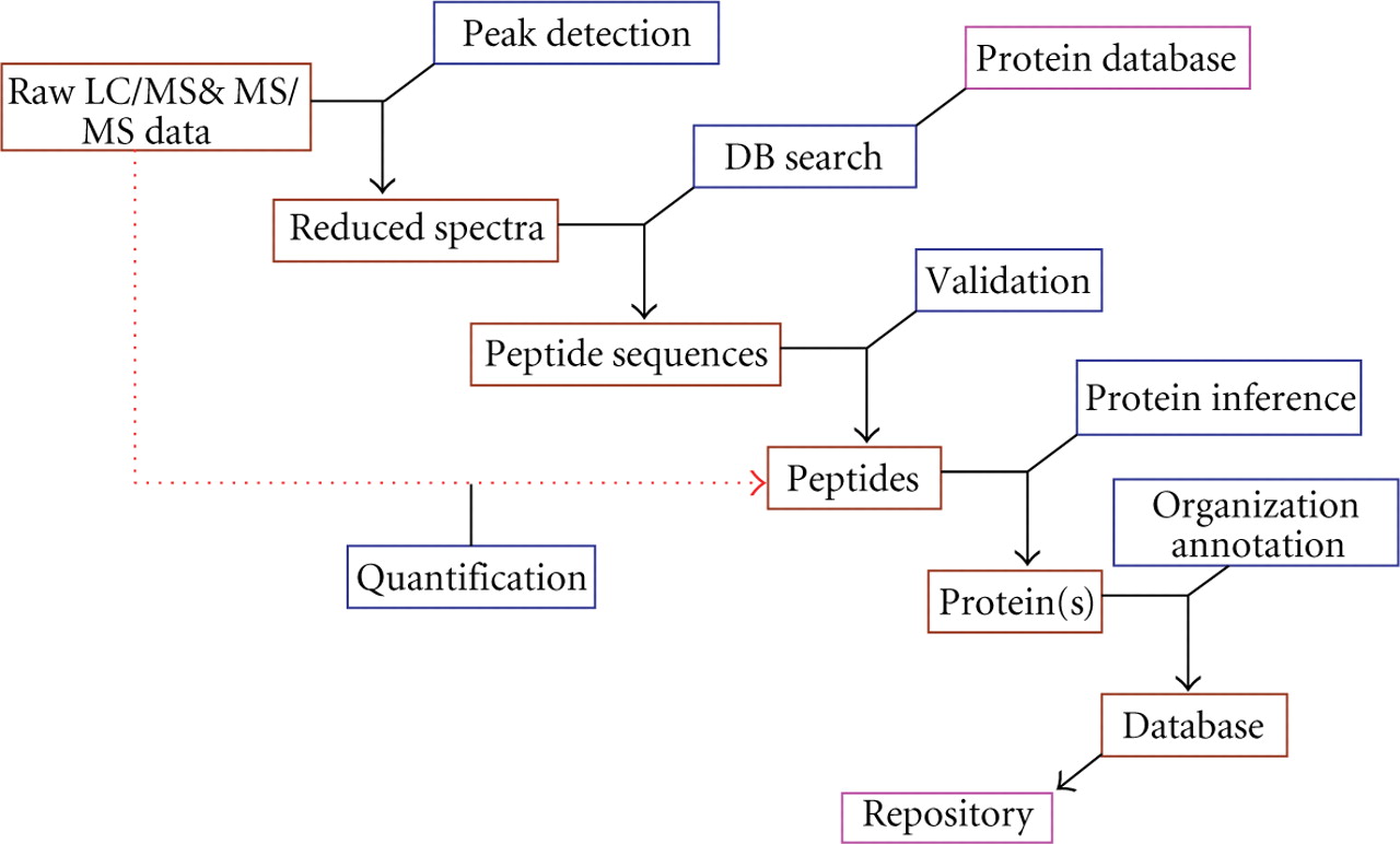Schematic representation of the different modules constituting a data analysis pipeline. RT: retention time; z: charge state; Int: signal intensity; Seq: peptide amino acid sequence; Prot: protein accession number and sequence; DB: database; Std: standard; MM: molecular mass. Adapted from: Bruno Domon and Ruedi Aebersold, Molecular & Cellular Proteomics 5:1921–1926, 2006.