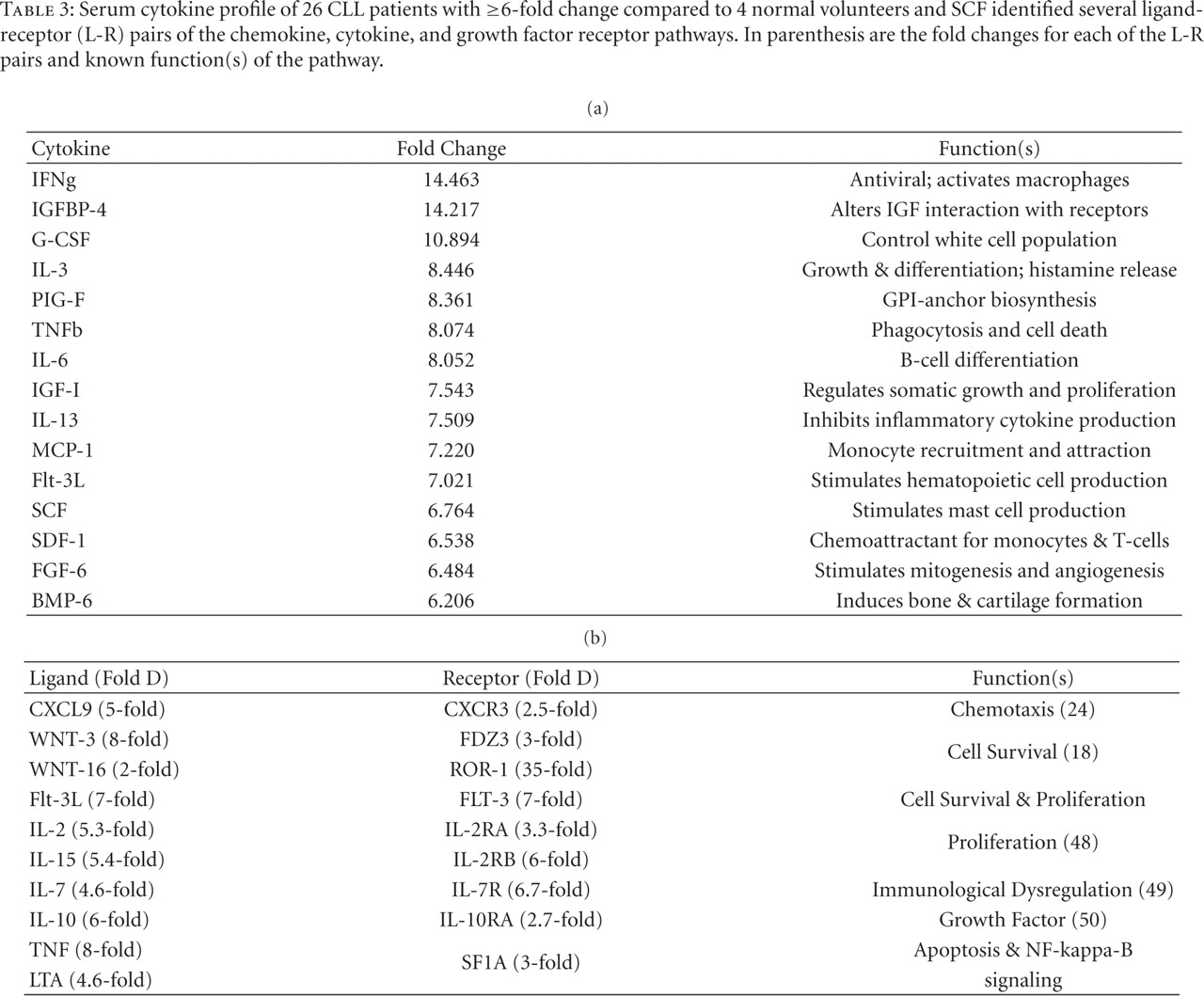 Gene Expression and Serum Cytokine Profiling of Low Stage CLL Identify WNT/PCP, Flt-3L/Flt-3, and CXCL9/CXCR3 as Regulators of Cell Proliferation, Survival, and Migration