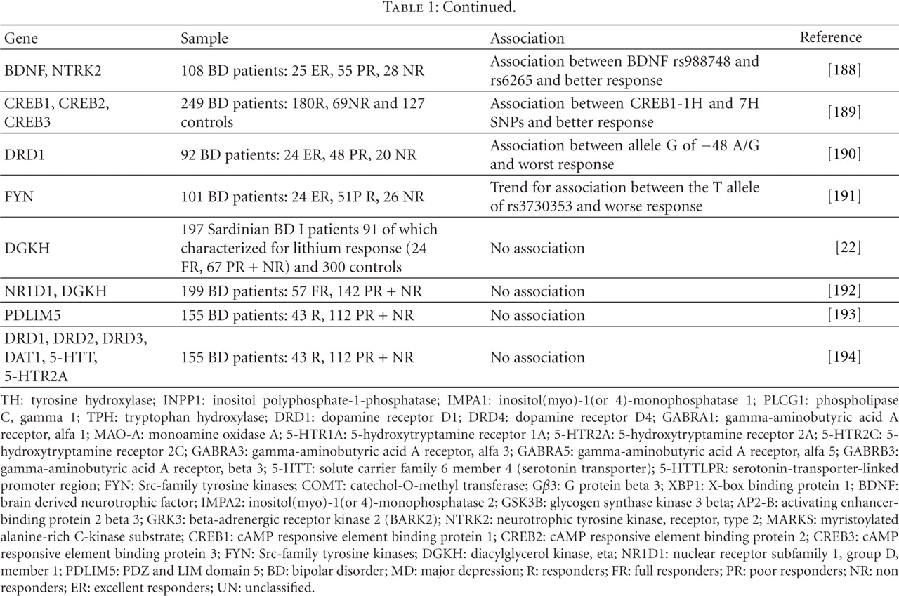 Pharmacogenomics of Mood Stabilizers in the Treatment of Bipolar Disorder
