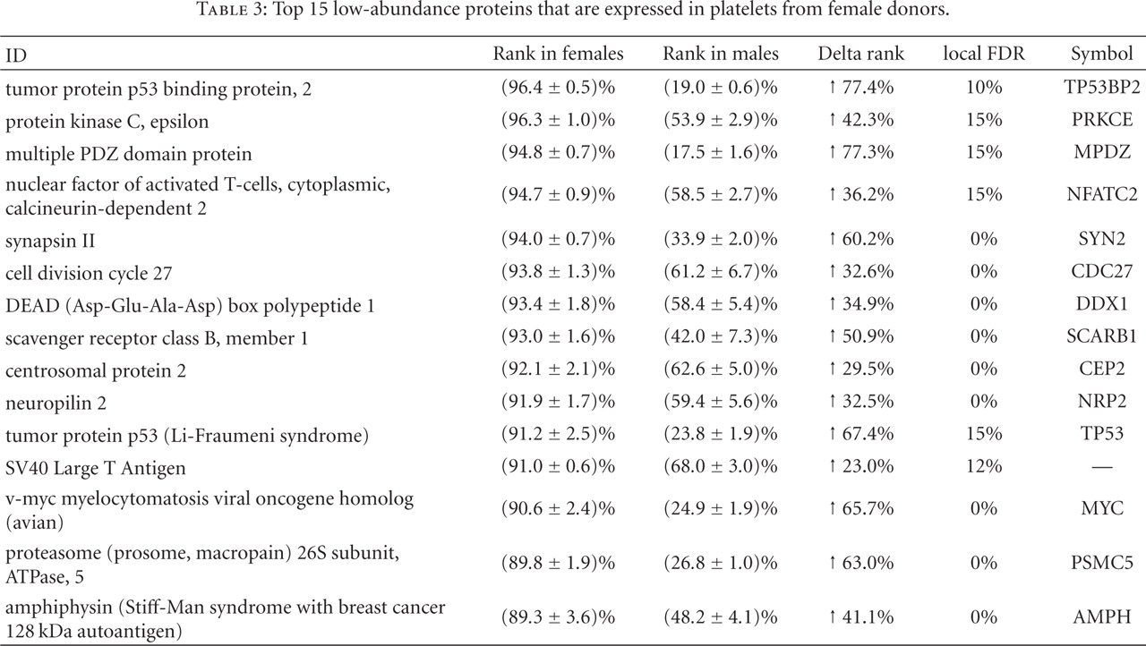 Gender Dependence for a Subset of the Low-Abundance Signaling Proteome in Human Platelets
