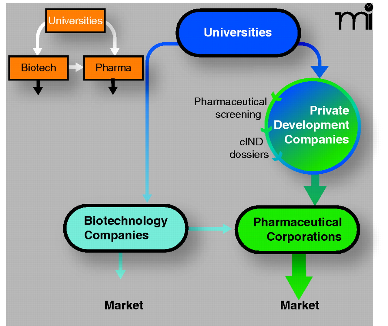 The University/Pharmaceutical/Biotechnology axis remodeled.