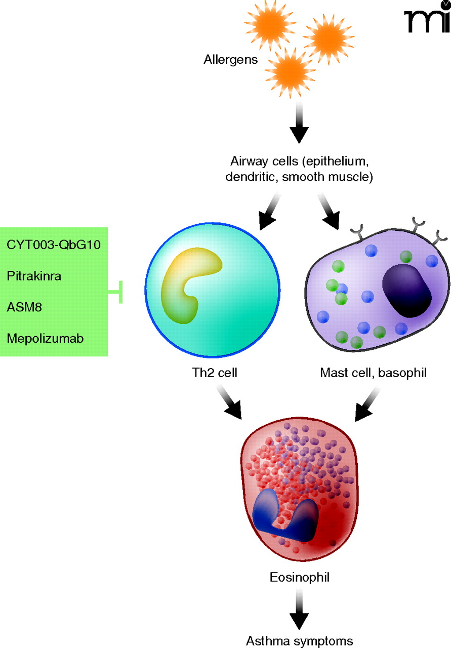 The traditional view of asthma, shown here in a simplified version, has become vastly more detailed over the past decade, and a great many pathways of cell differentiation and signal transduction that modulate asthma have been identified, particularly with the use of mouse models. But as nineteenth-century physiologist Claude Bernard observed, it is sometimes “what we think we know that keeps us from learning.” New successes in asthma therapeutics (left), built upon “what we know,” appear to address only certain patient types. The ongoing need for new asthma therapeutics may require researchers to broaden the types of questions and metrics used in clinical development. (See text for details.)