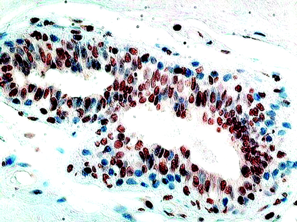 of invasive ductal cancer of the breast stained with an ERβ -specific polyclonal antibody (Upstate Biotech).
