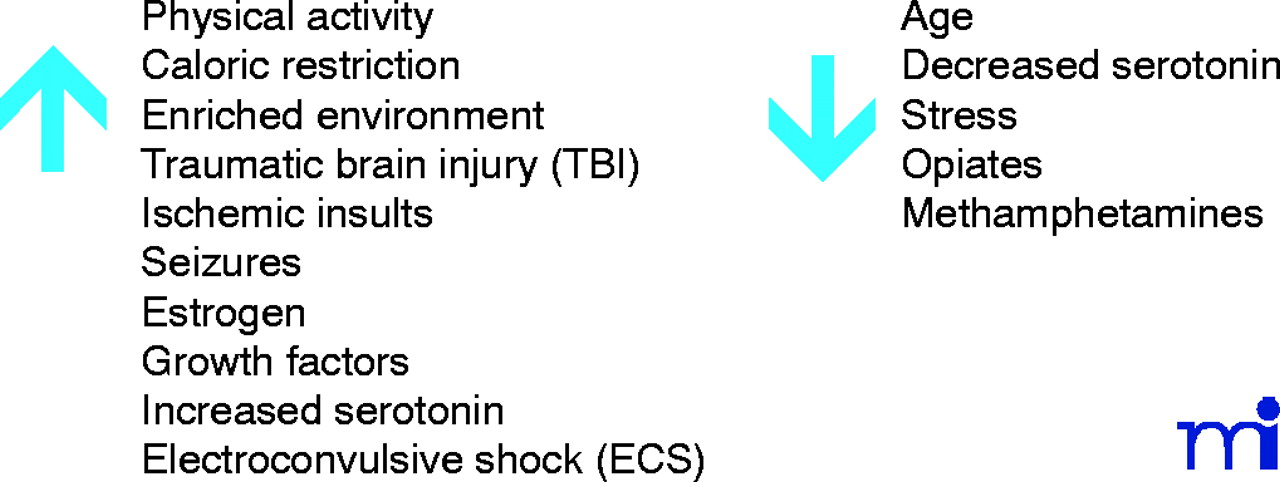 Some environmental factors reported to modulate the rate of neurogenesis. See (10) for a complete review.