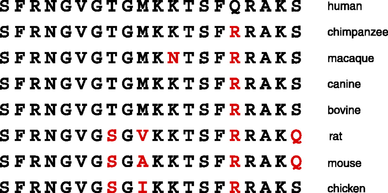 Alignment of NPS peptide structures from various species. Sequences were deduced from GenBank finished and unfinished genome sequences. Amino acids different from human NPS are highlighted