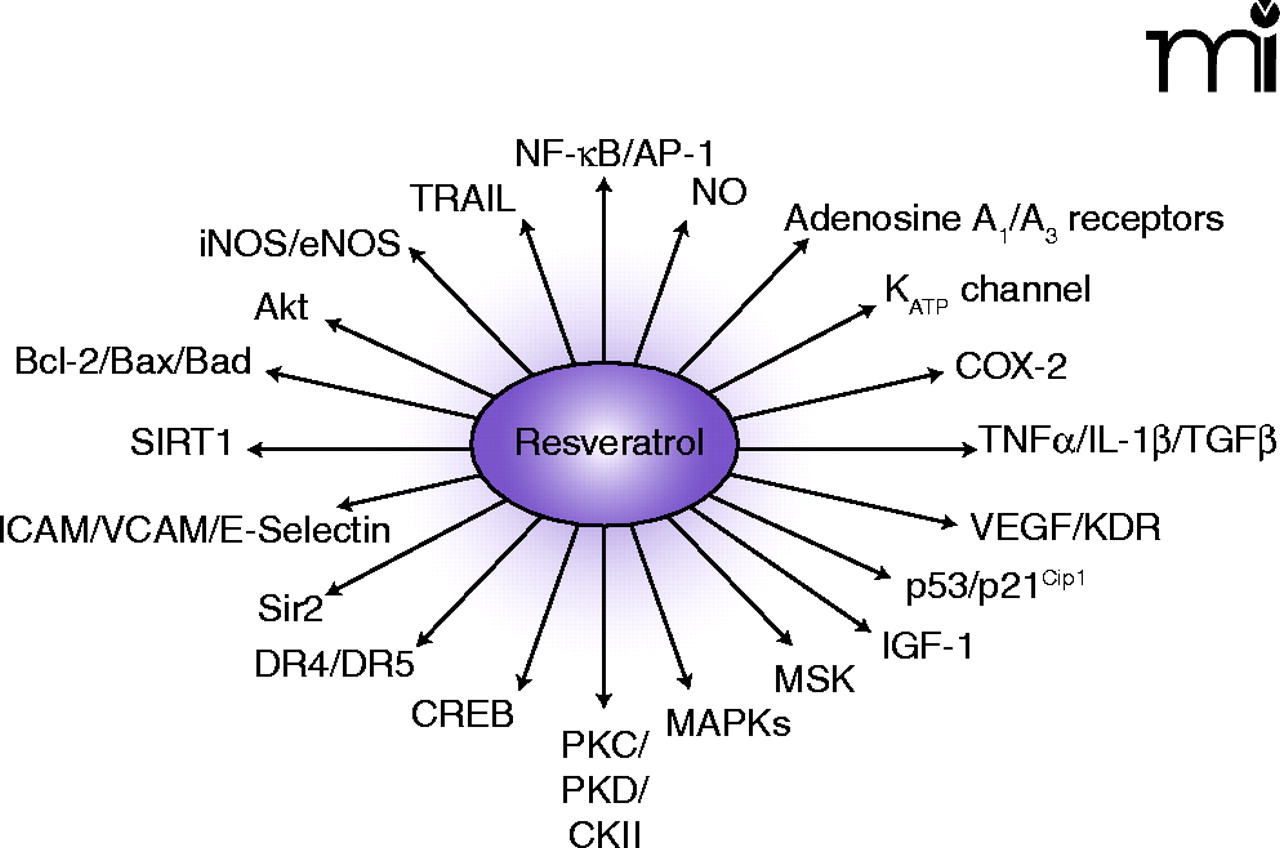 Molecular Targets of Resveratrol. A number of signaling pathways related to inflammation and gene expression are modulated by resveratrol.
