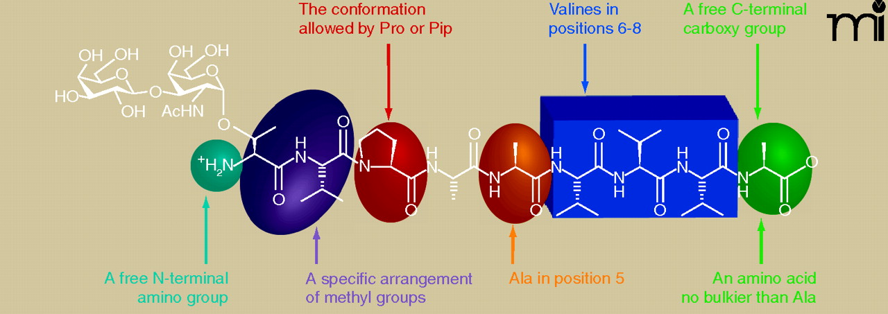 The structural elements important for APF’s activity. Structural features of the peptide portion of as-APF needed for activity as determined by SAR (9). Groups of amino acids are highlighted in colored boxes and a brief statement concerning their importance is annotated. A synopsis of the SAR that led to Figure 2⇓ (determined through the synthesis and biological evaluation of thirty-six analogs) is given in Box 1. Reprinted with permission.