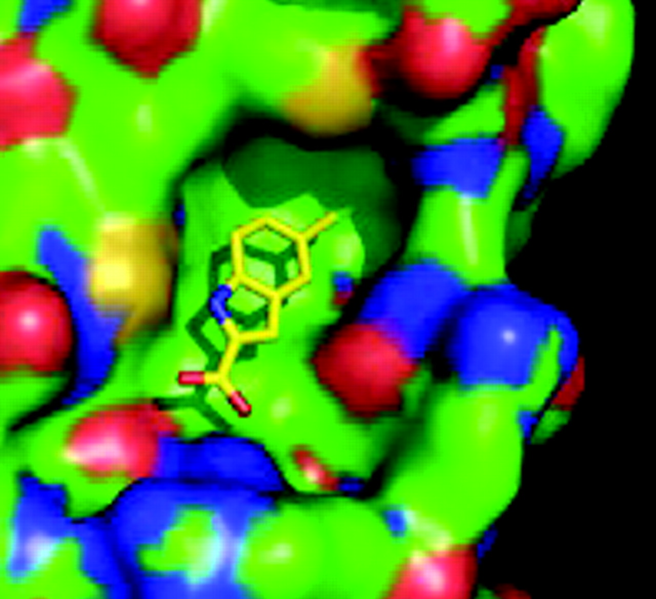 The visual power of crystallographic data. Shown here is the binding of a fragment to the protein Pin1. (See text for details.)