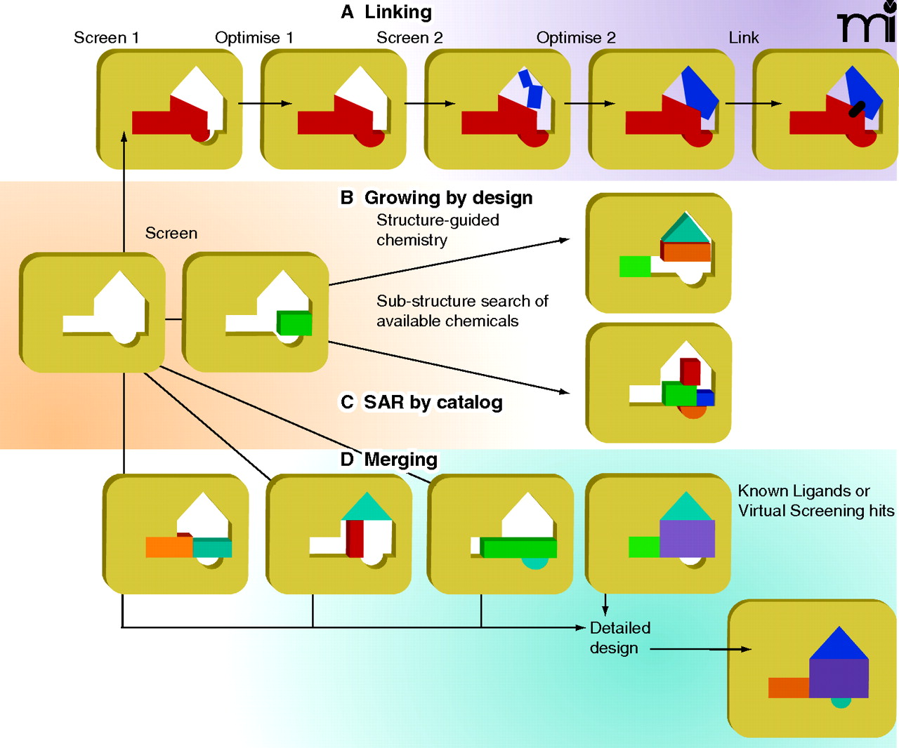Evolving fragments into leads. The four main strategic categories are shown for evolving fragments into lead compounds.