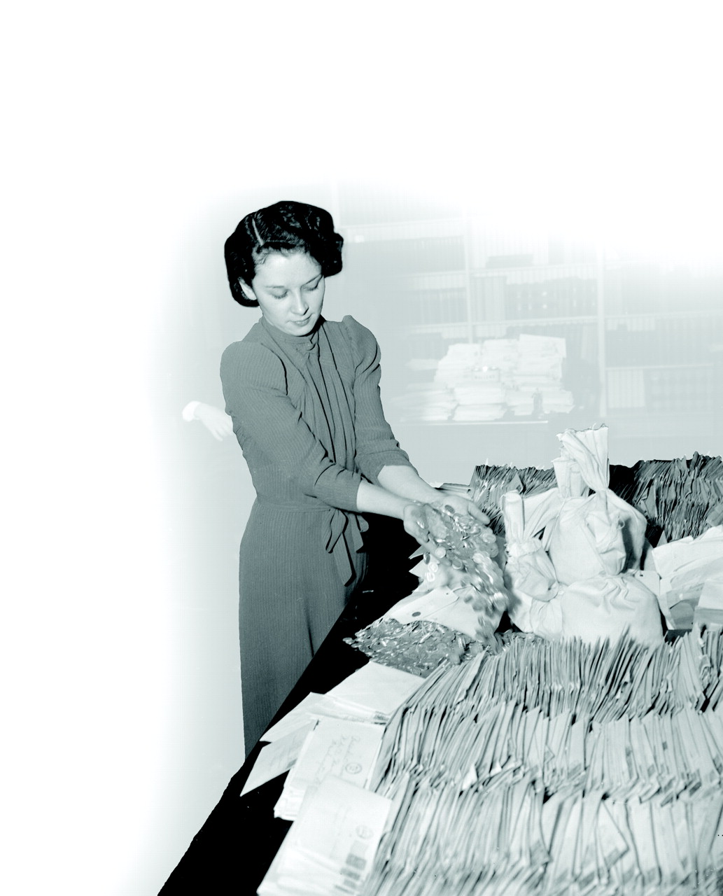 Washington, D.C., Jan. 25. 1939: Dimes in bags, envelopes, and packages are pouring into the White House as part of the president’s March of Dimes